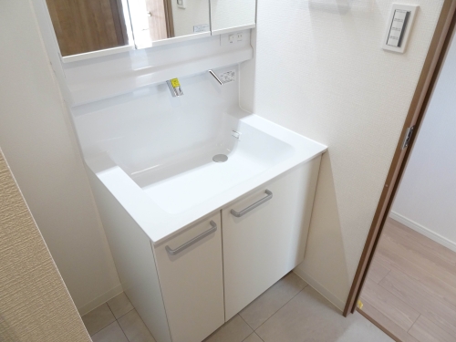 ■洗面室(洗面化粧台、洗濯用水栓、洗濯パン、分電盤)